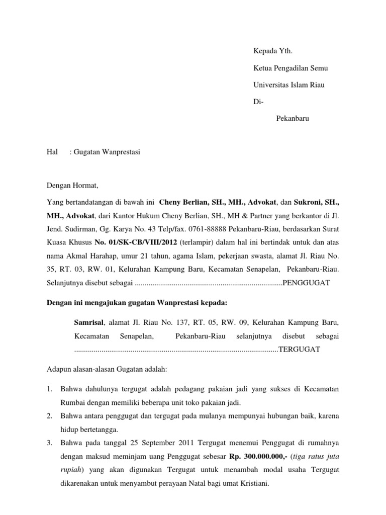 Contoh Surat Gugatan Wanprestasi Pdf Document