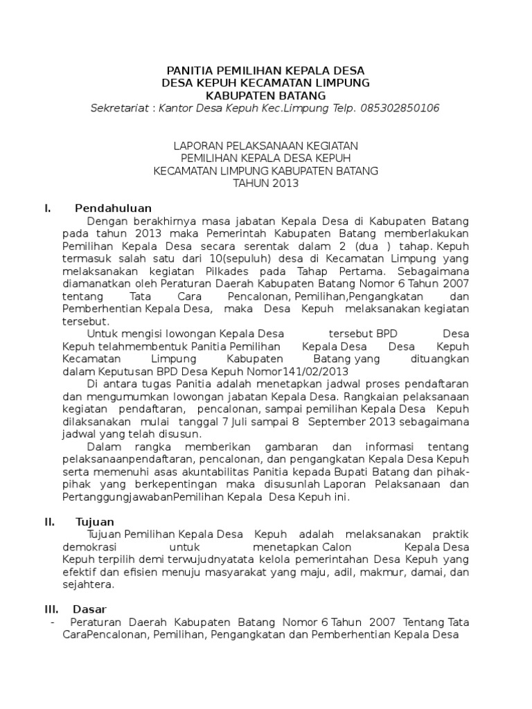 Doc Keputusan Bpd Panitia Pilkades Ppk Kemranjen Academiaedu