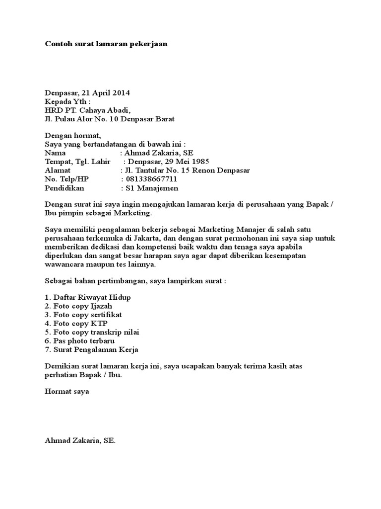 Contoh Surat Lamaran Pekerjaan Terlengkap 50 Contoh