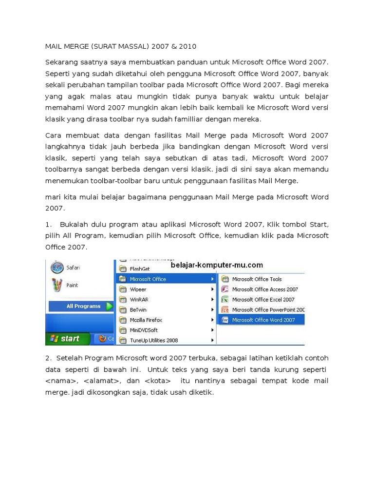 Langkah Langkah Membuat Surat Mail Merge Di Ms Word 2007