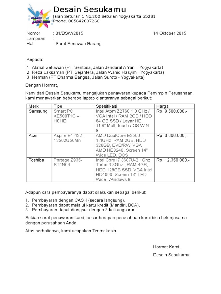 Gambar Contoh Surat Penawaran Produk Elektronik 95 Dalam Format