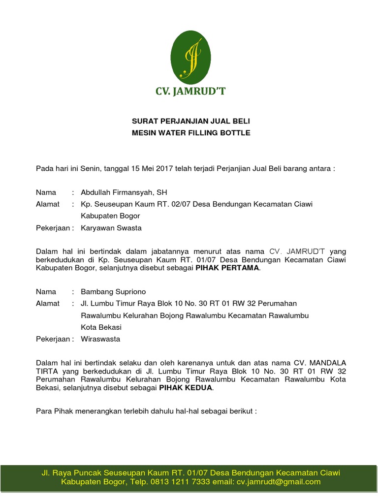 Contoh Surat Jual Beli Mesin