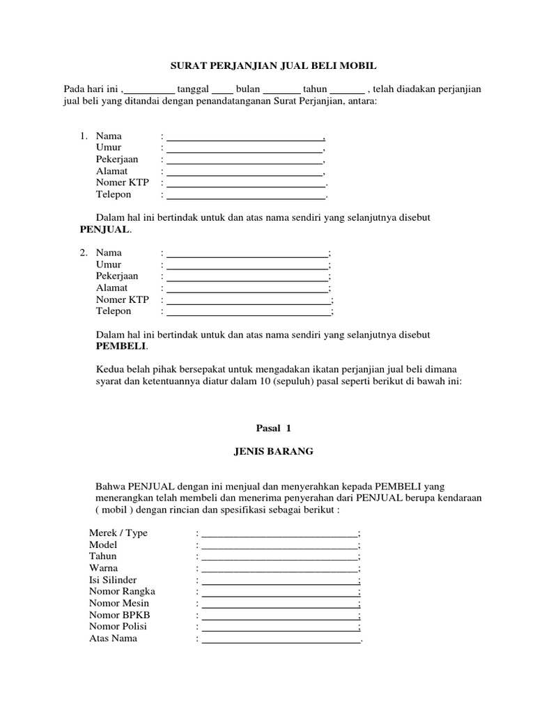 Surat Perjanjian Jual Beli Mobil