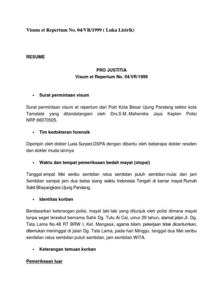 Berikut data lengkap tentang Contoh Surat Permintaan Visum Dari Kepolisian.