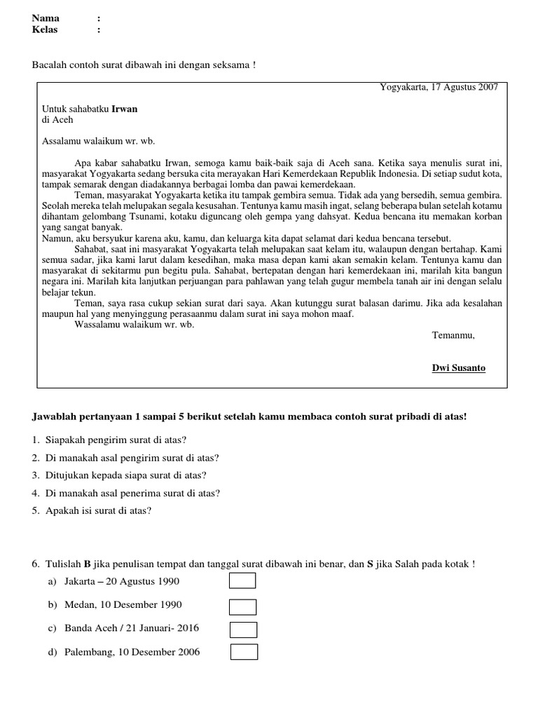 Informasi mengenai Contoh Surat Pribadi Untuk Guru Sd.