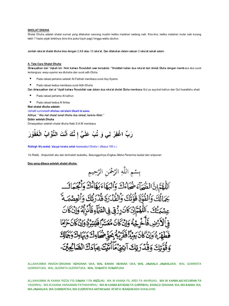 Teks bacaan surat adh dhuha arab latin dan terjemahannya surah adh dhuha adalah surat makkiyah dan merupakan surat ke 93 dari al quran yang terdiri dari 11 ayat dan surat ini juga diturunkan sesudah surat al fajr. Sholat dhuha memiliki banyak keutamaan. Bacaan sholat dhuha dan doa setelah sholat dhuha lengkap latin dan terjemah.