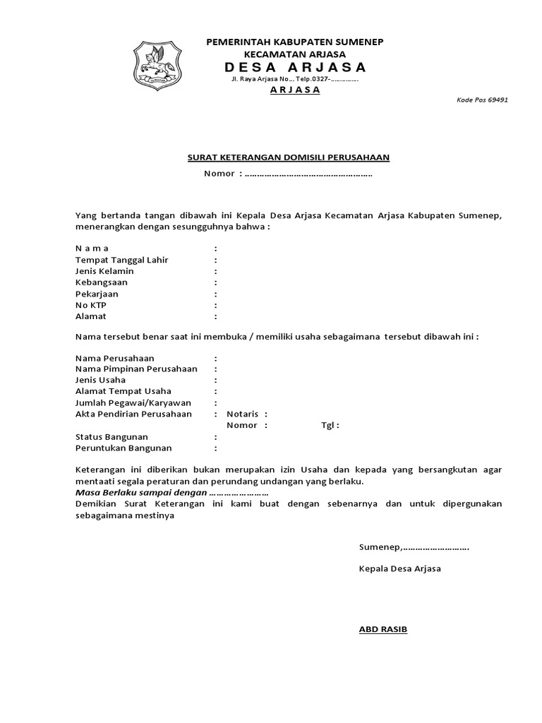 Surat Keterangan Domisili Untuk Perusahaan Atau Pt Khusus Dari Desa