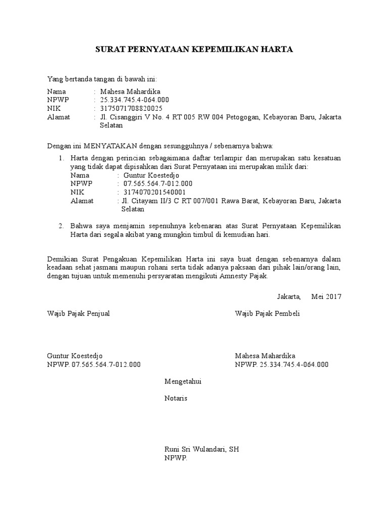 Surat Pernyataan Kepemilikan Harta