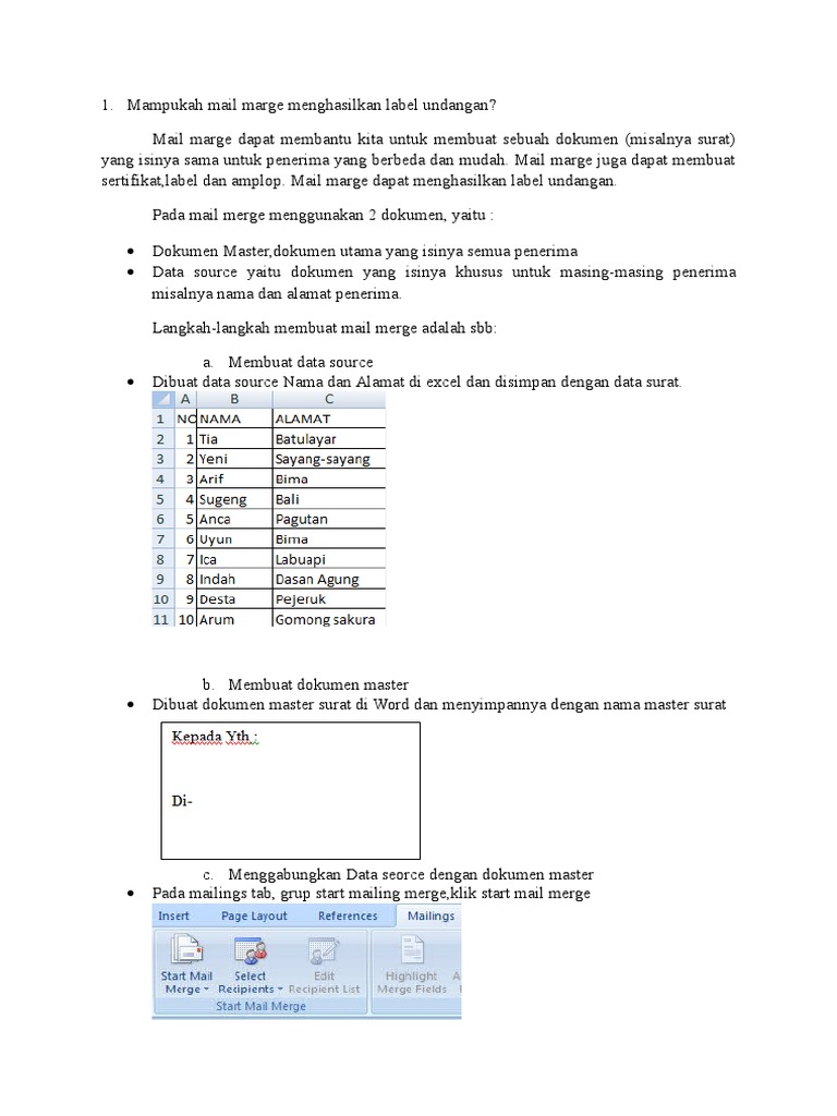 Doc Cara Membuat Surat Menggunakan Mail Merge Lista Fitri