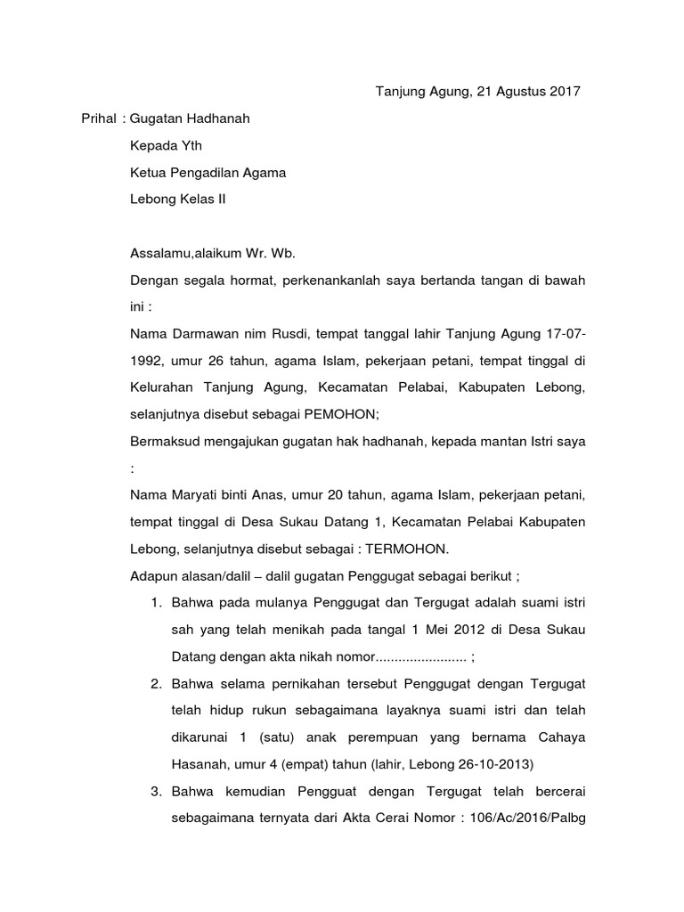 Berikut gambar-gambar mengenai Contoh Surat Gugatan Hak Asuh Anak.