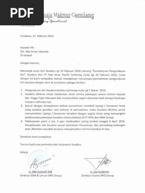 Contoh Surat Pengunduran Diri Sebagai Direktur Utama Surat Kerja F