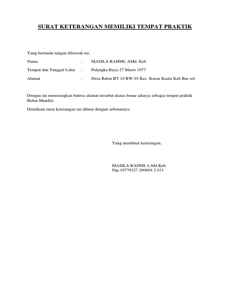 Contoh Surat Pernyataan Memiliki Tempat Praktek