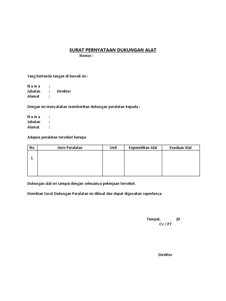 Contoh Surat Pernyataan Dukungan Alat