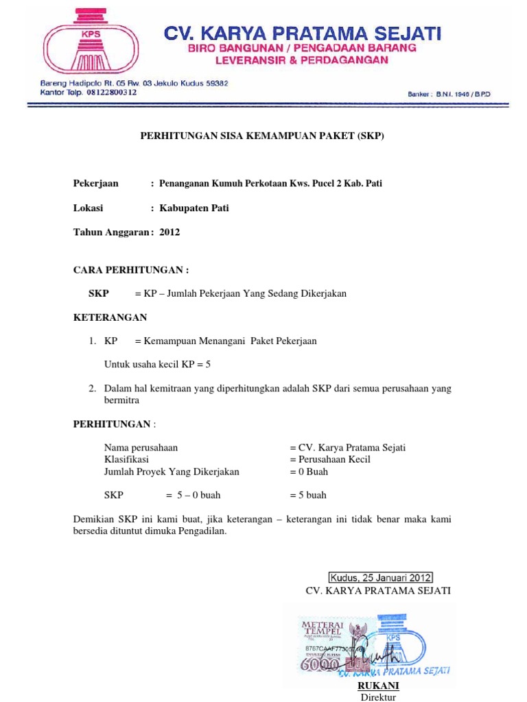 Berikut adalah detail Contoh Surat Pernyataan Sisa Kemampuan Paket.