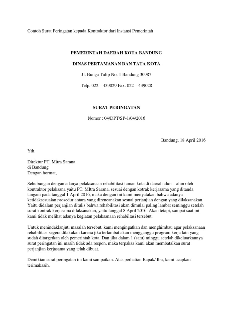 Contoh Surat Peringatan Kepada Kontraktor Dari Instansi Pemerintah