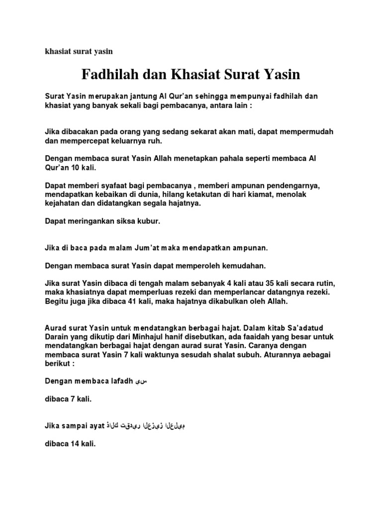 Bacaan Surat Yasin Lengkap Arab Latin Dan Terjemahannya Manfaat