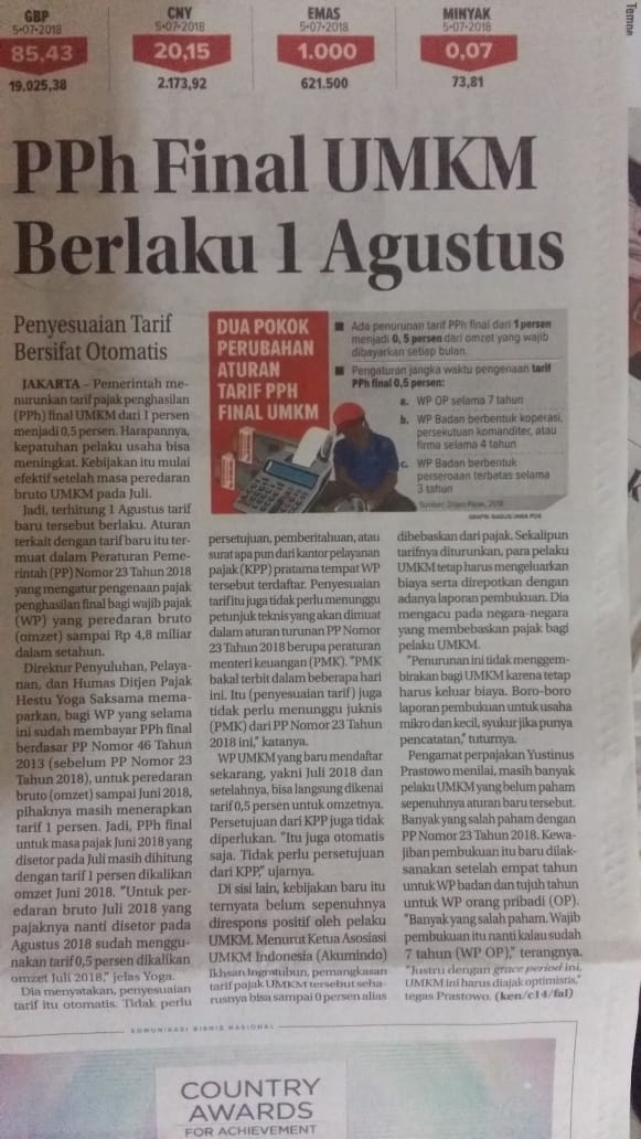 Pph Final Ukm 05 Persen Berlaku 1 Juli 2018 Ini Ketentuannya