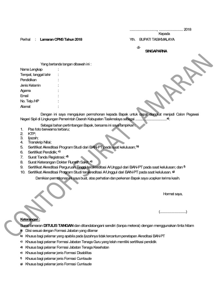Download Contoh Surat Lamaran Dan Penyataan Seleksi Cpns 2018 Tips
