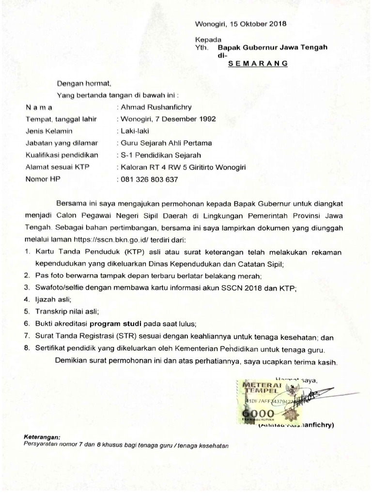 Contoh Surat Lamaran Dan Surat Pernyataan Cpns 2018 Download Link