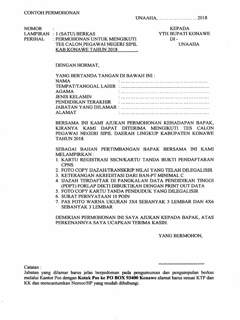 Contoh Surat Lamaran Cpns Kab Konawe 2018pdf