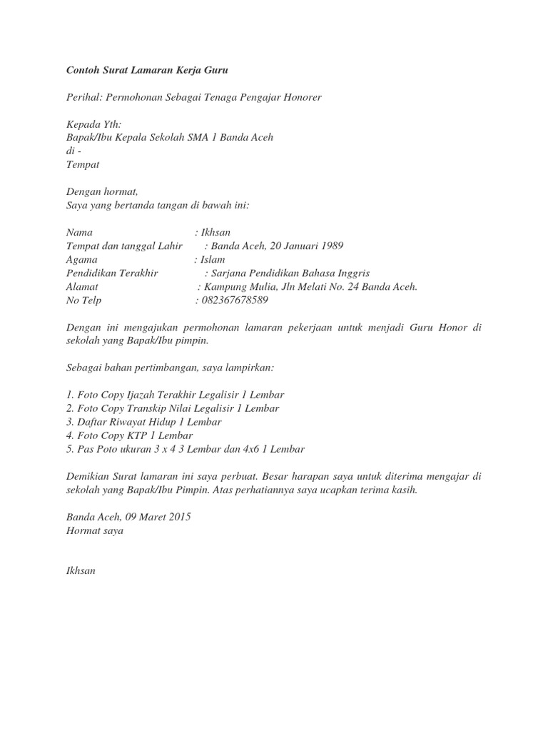 Contoh Surat Lamaran Kerja Di Guru Kaskus