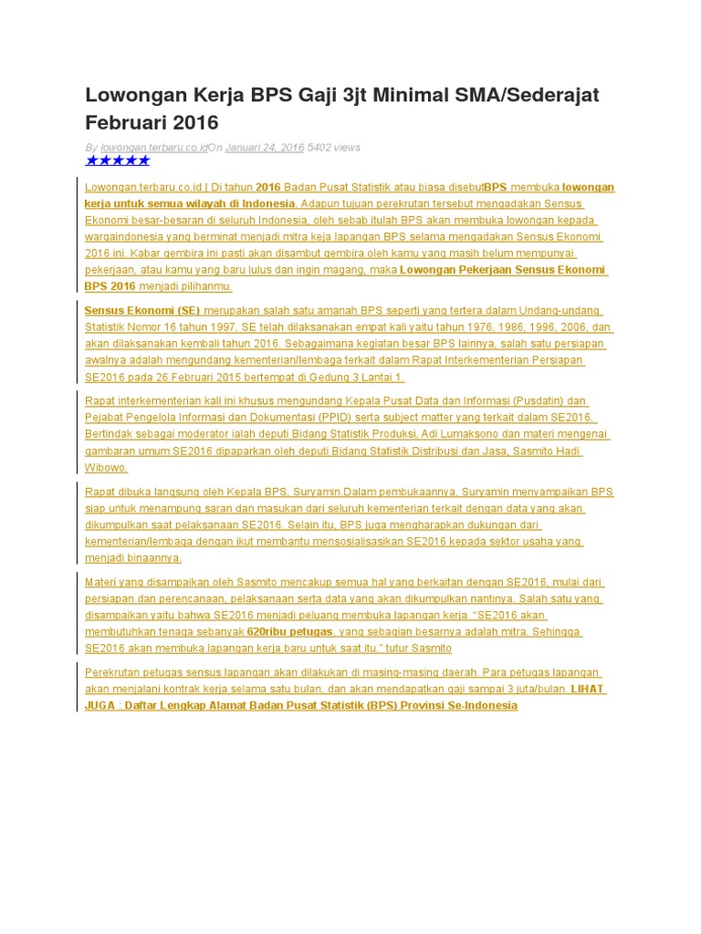 Lowongan Kerja Bps Badan Pusat Statistik Edisi Edukasi