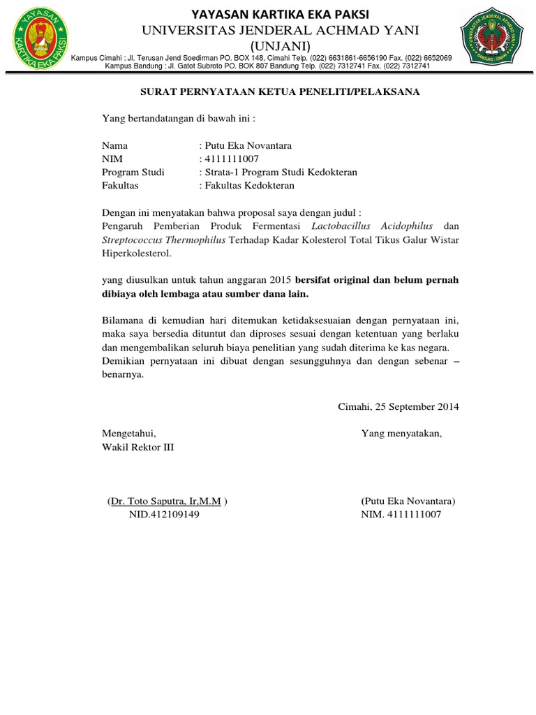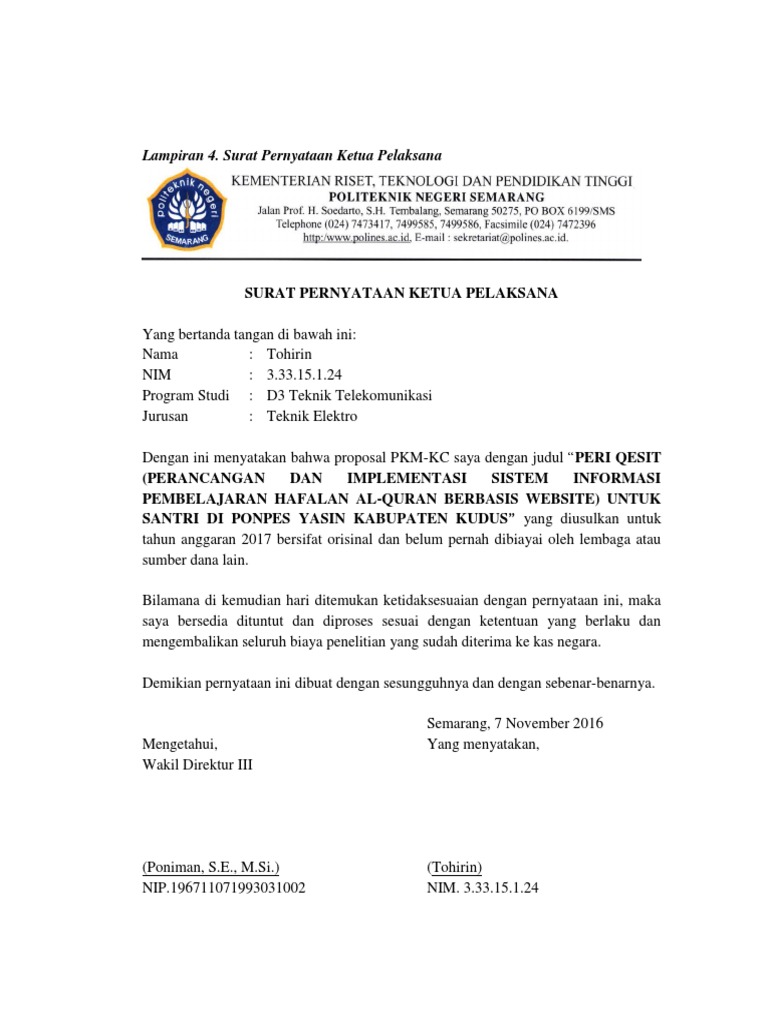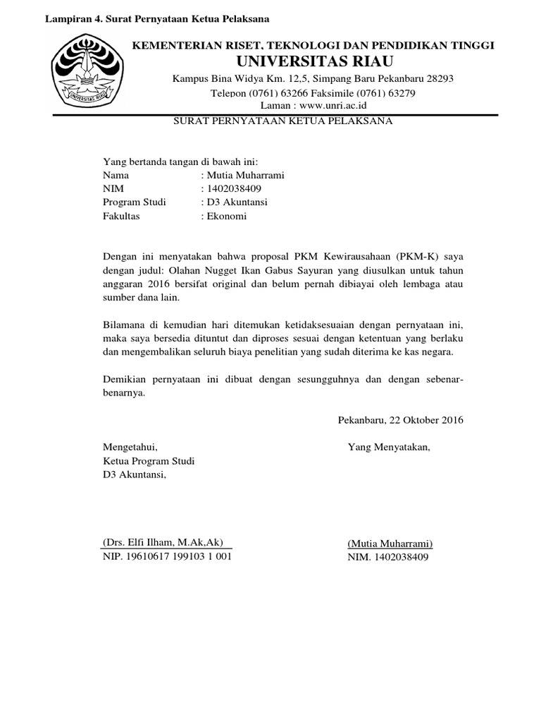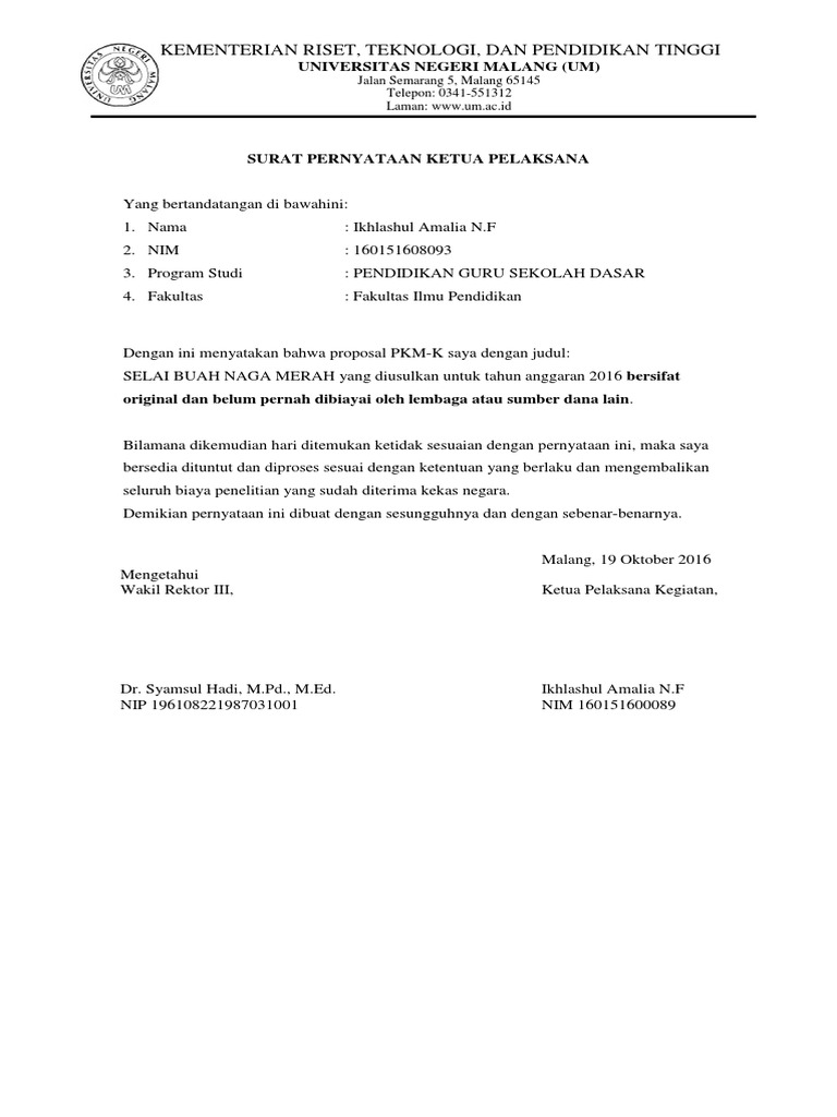 Jika ada sedang mencari Contoh Surat Pernyataan Ketua Pelaksana Pkm.