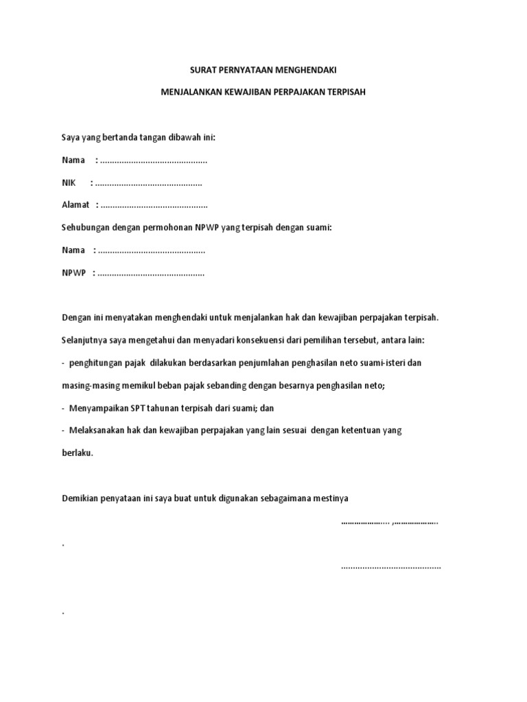 Surat Pernyataan Menghendaki Pisah Hak Perpajakan