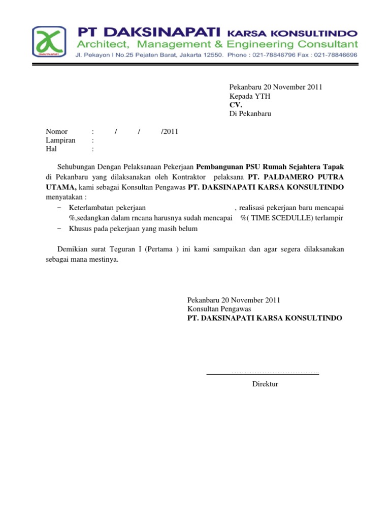Dibawah ini adalah informasi Contoh Surat Teguran Konsultan Ke Kontraktor.