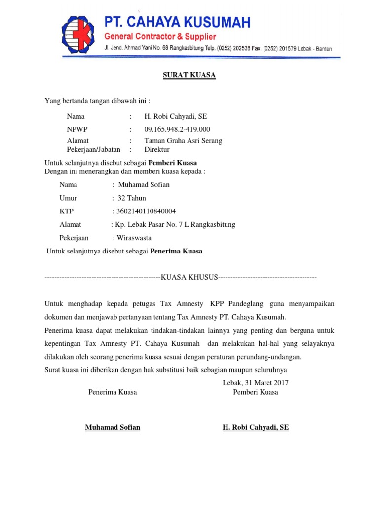 Contoh Surat Kuasa Pengurusan Pajak Suratmenyuratnet