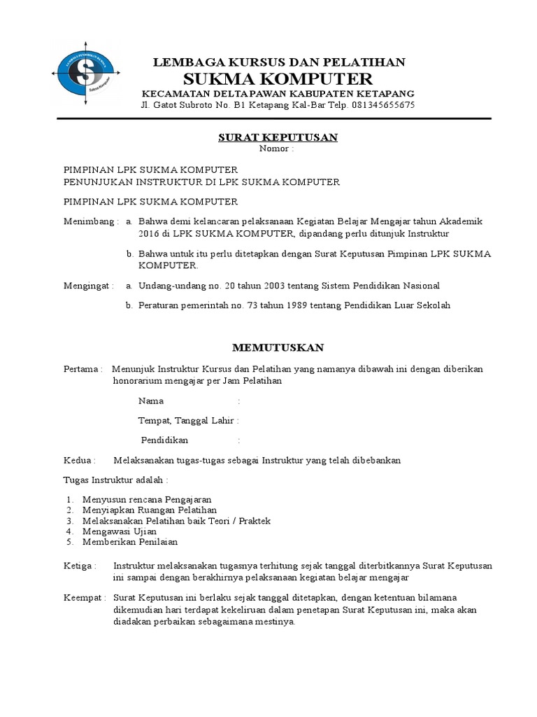 15 Contoh Surat Keputusan Yang Baik Dan Paling Lengkap Contoh