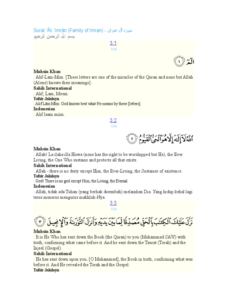 Qs 31 quran surat ali imran ayat 1 terjemah bahasa indonesia oleh kementrian agama republik indonesia kemenag atau departemen agama depag muhammad quraish shihab tafsir jalalain jalal ad din al mahalli dan jalal ad din as suyuti. Website cepat ringan hemat kuota. Tafsir al muyassar kementerian agama saudi arabia.
