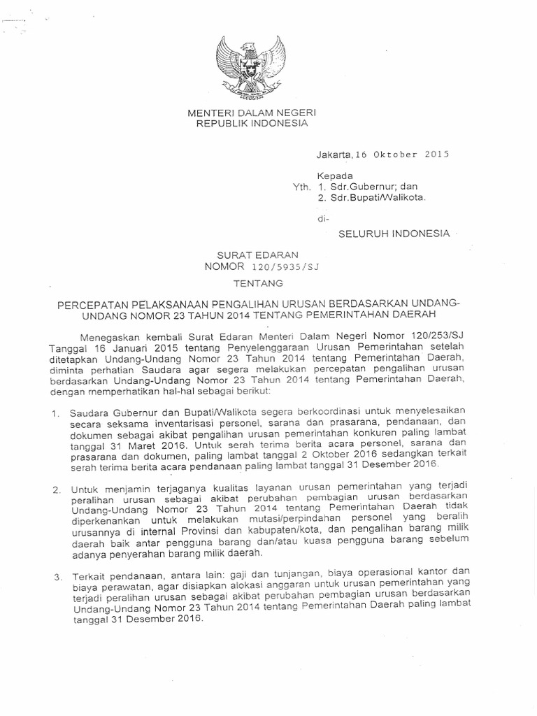Data-data mengenai Surat Edaran Mendagri Nomor 120 Tahun 2015.
