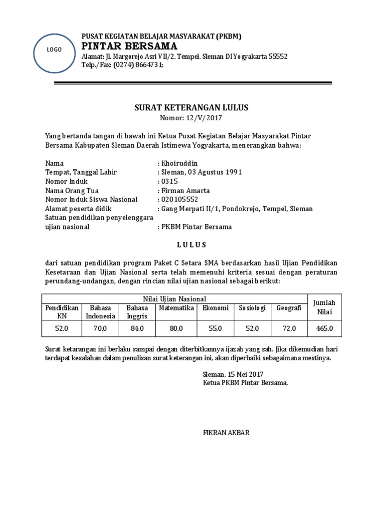 Contoh Surat Keterangan Lulus Sementara Ketik Surat