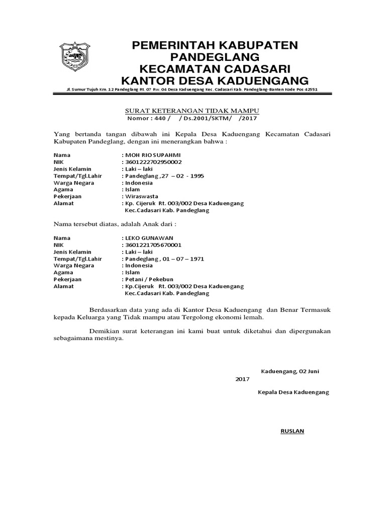 Surat Keterangan Tidak Mampu Miskin Dari Kelurahandocx Dekstop