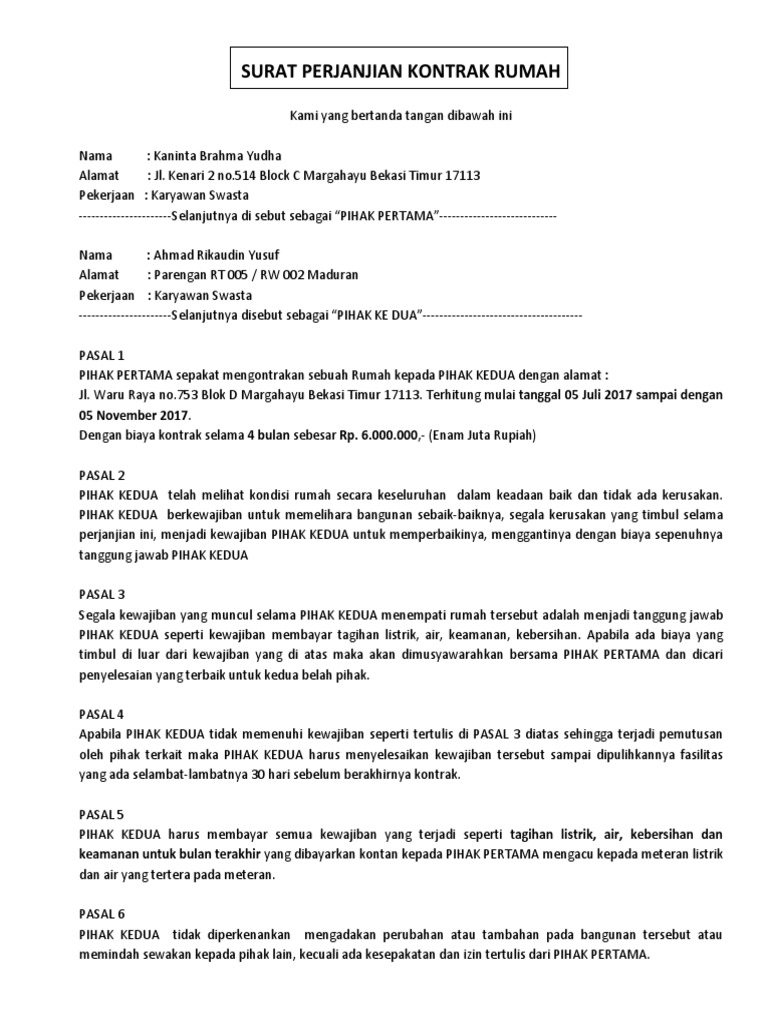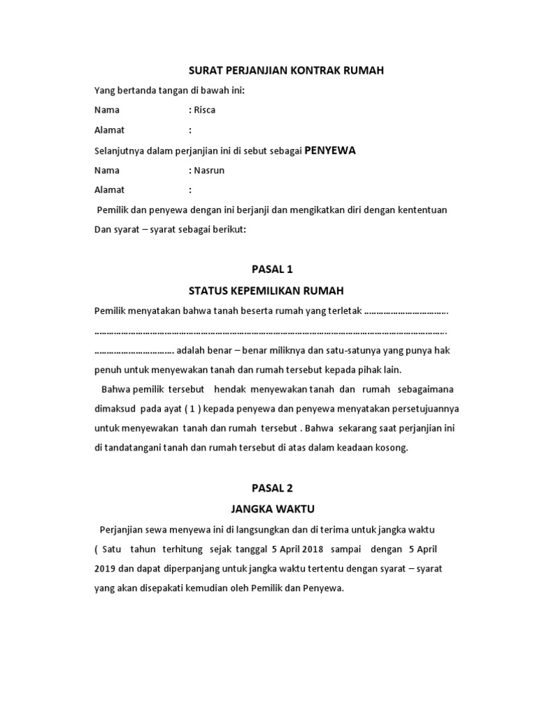 Contoh Surat Perjanjian Sewa Rumah Kontrakan Pdf Doc Lamudi