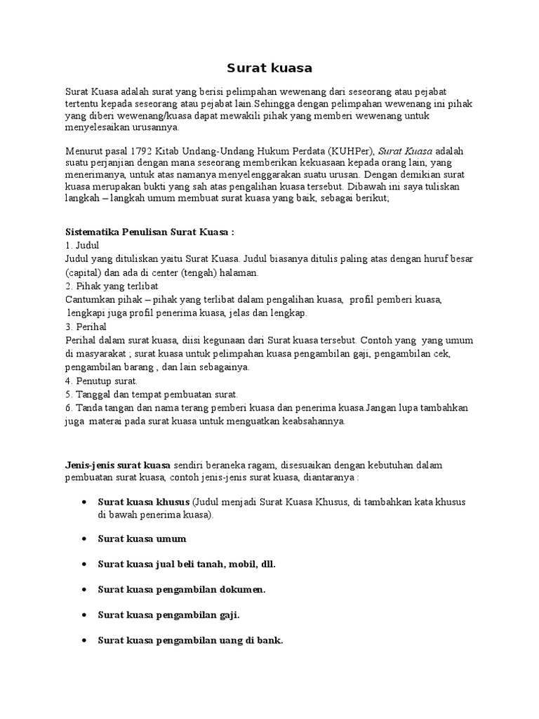 Mau Tau Contoh Surat Kuasa Yang Bagus Disini Tempatnya