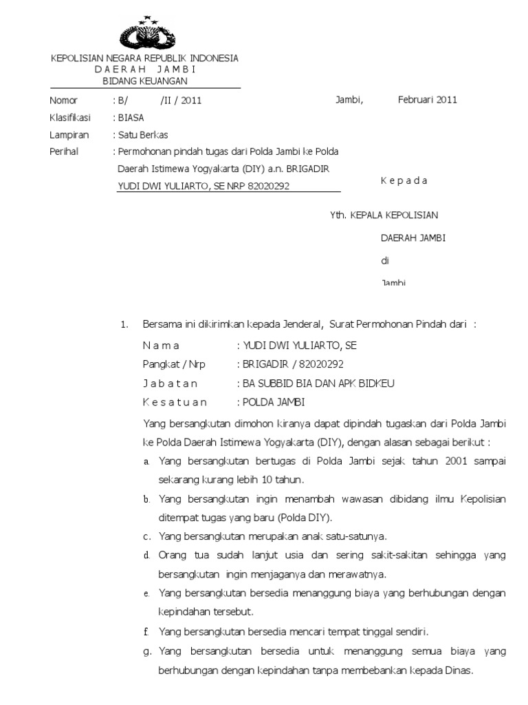 Contoh Surat Permohonan Mutasi Kerja Contoh Surat