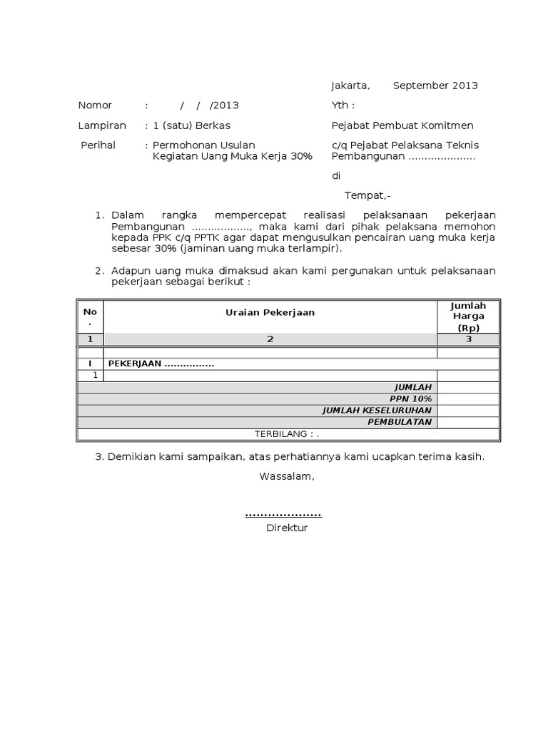 Contoh Surat Permohonan Uang Muka Surat 0