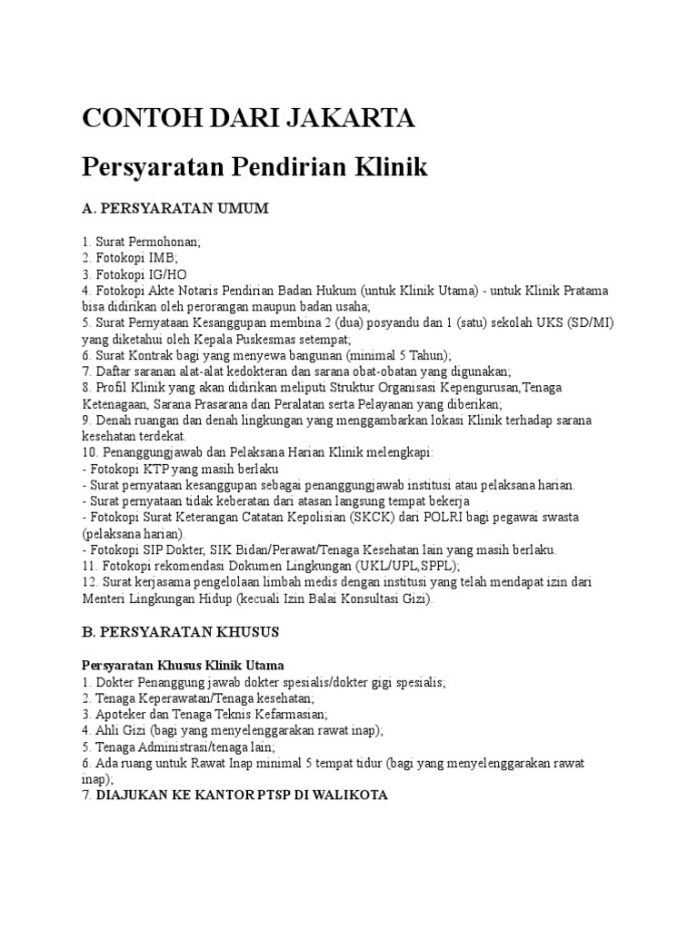 Persyaratan Izin Klinik Pratamautama Rawat Jalanrawat Inap24 Jam
