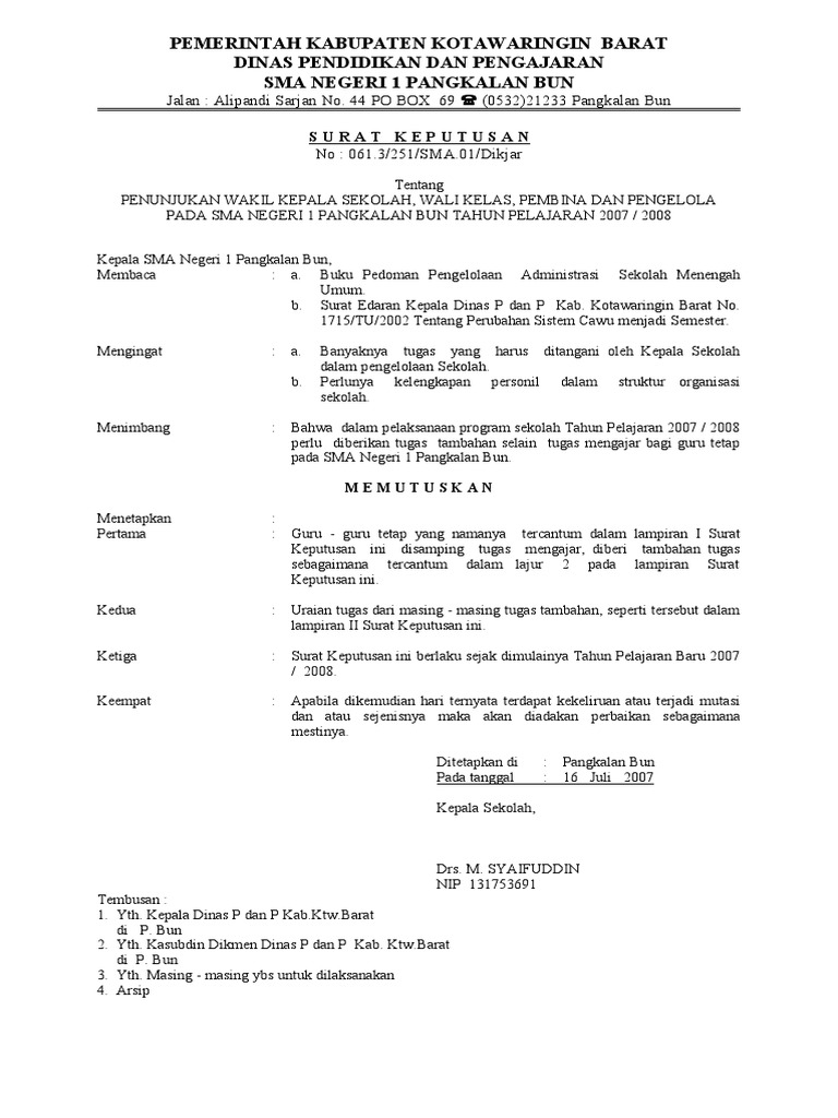 Surat Keputusan Kepala Sekolah Menengah Atas Sma Negeri 1 Pemenang