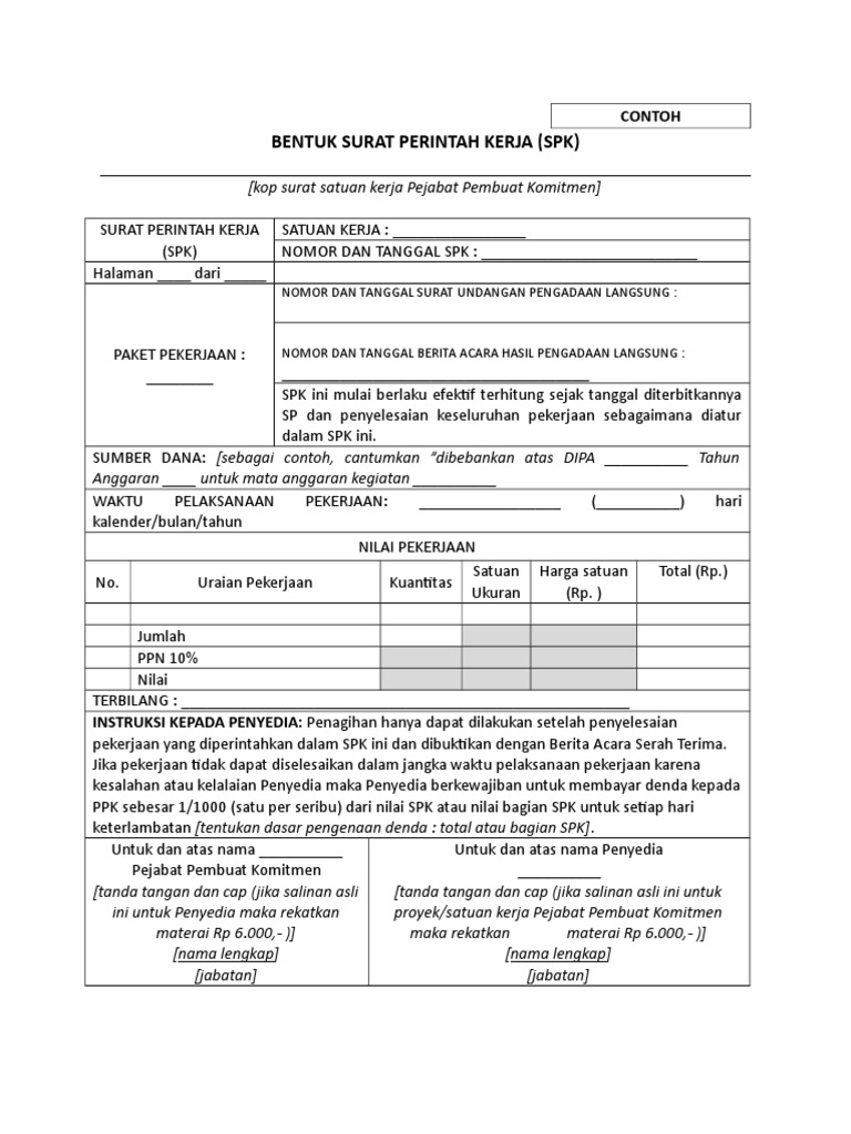 Contoh Surat Perintah Kerja Sederhana Kontrak Penyedia