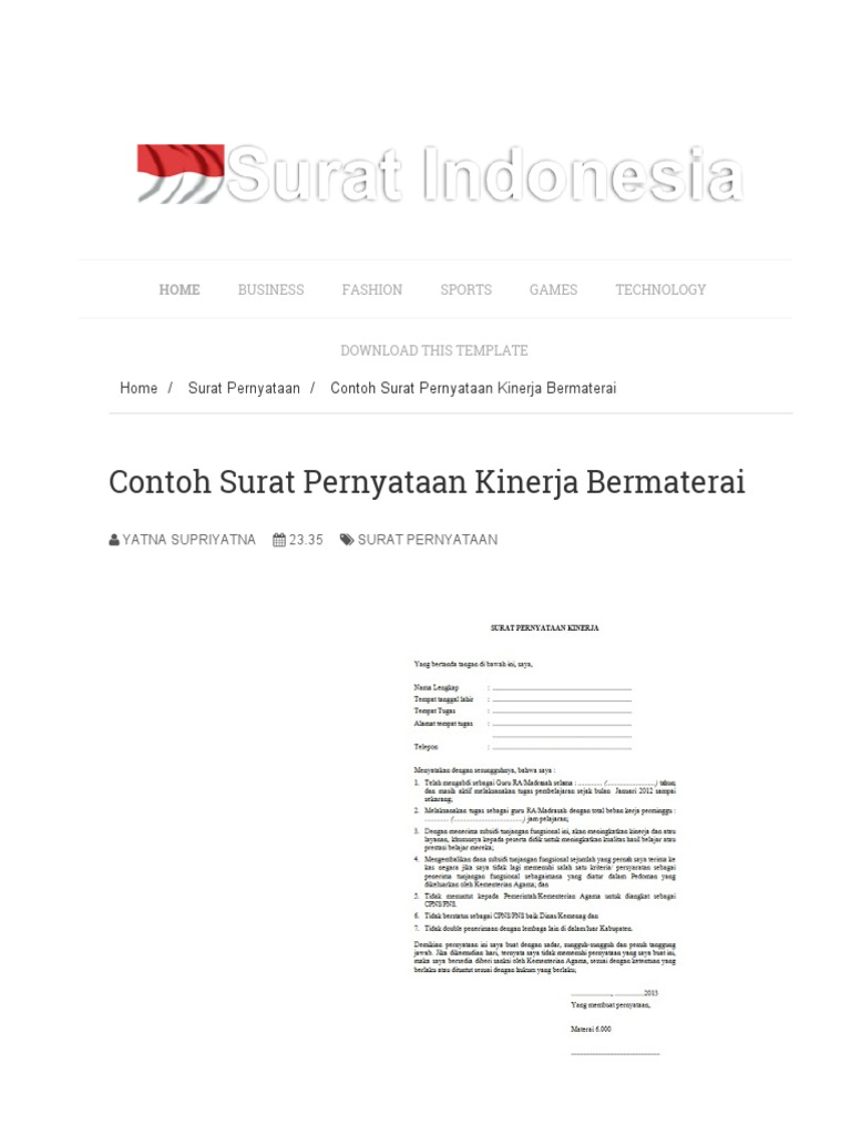Contoh Surat Pernyataan Kinerja Bermaterai Contoh Surat Lengkap
