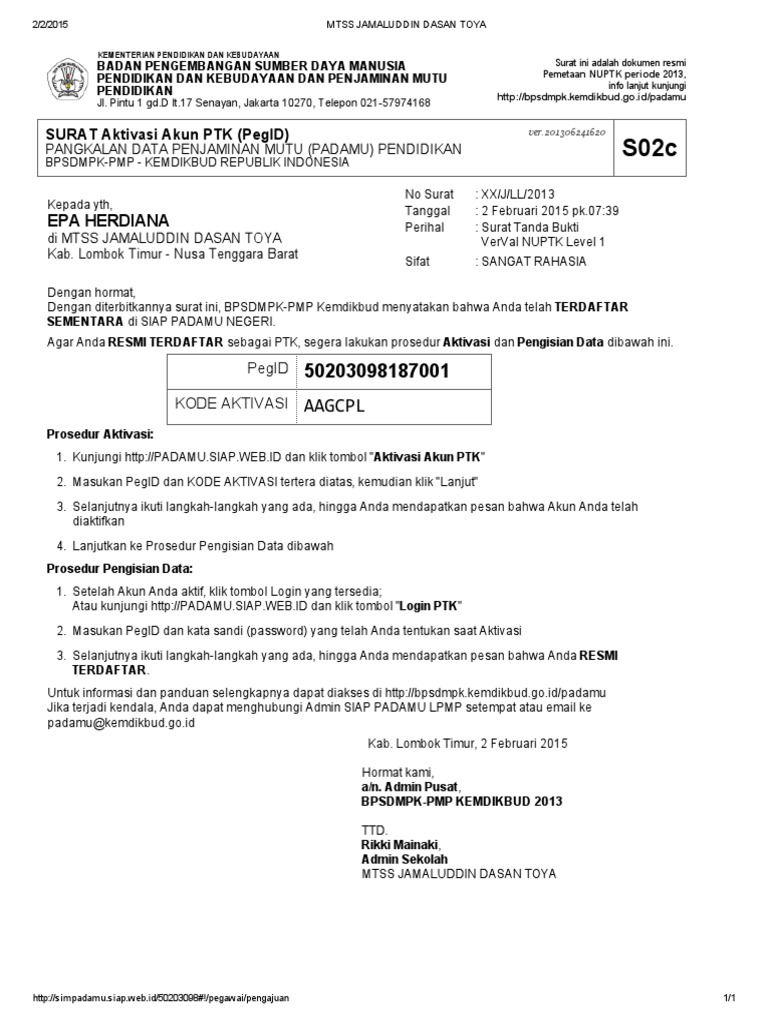 Anang Lihum Cara Mengetahui Kode Aktivasi Ptk Di Padamu Negeri