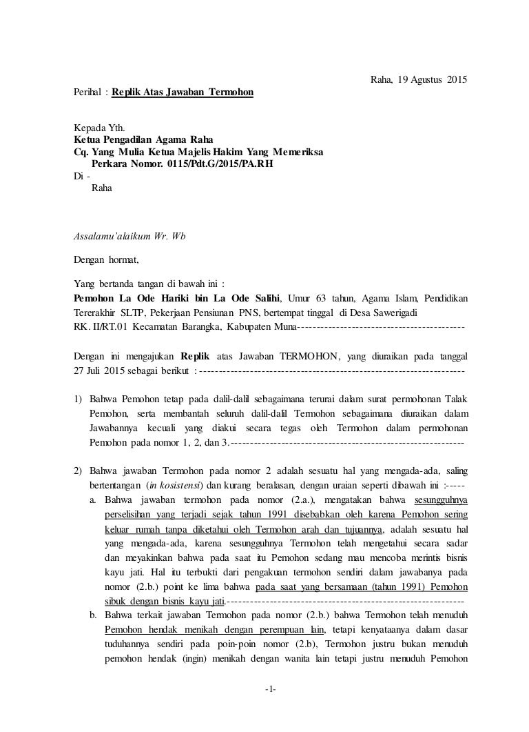 Berikut adalah detail Contoh Surat Jawaban Termohon Cerai Talak.