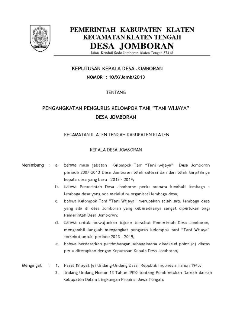 Contoh Surat Keputusan Sk Kepala Desa Untuk Tim Penggerak Pkk