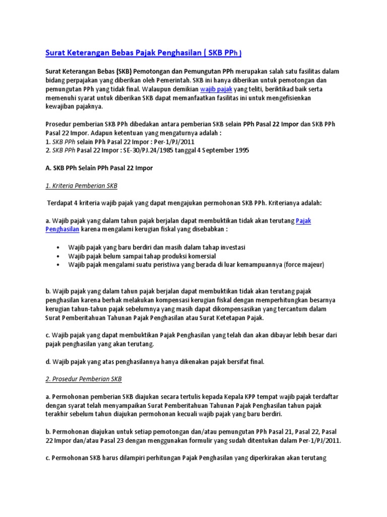 Tata Cara Mendapatkan Skb Surat Keterangan Bebas Potong Pph Untuk