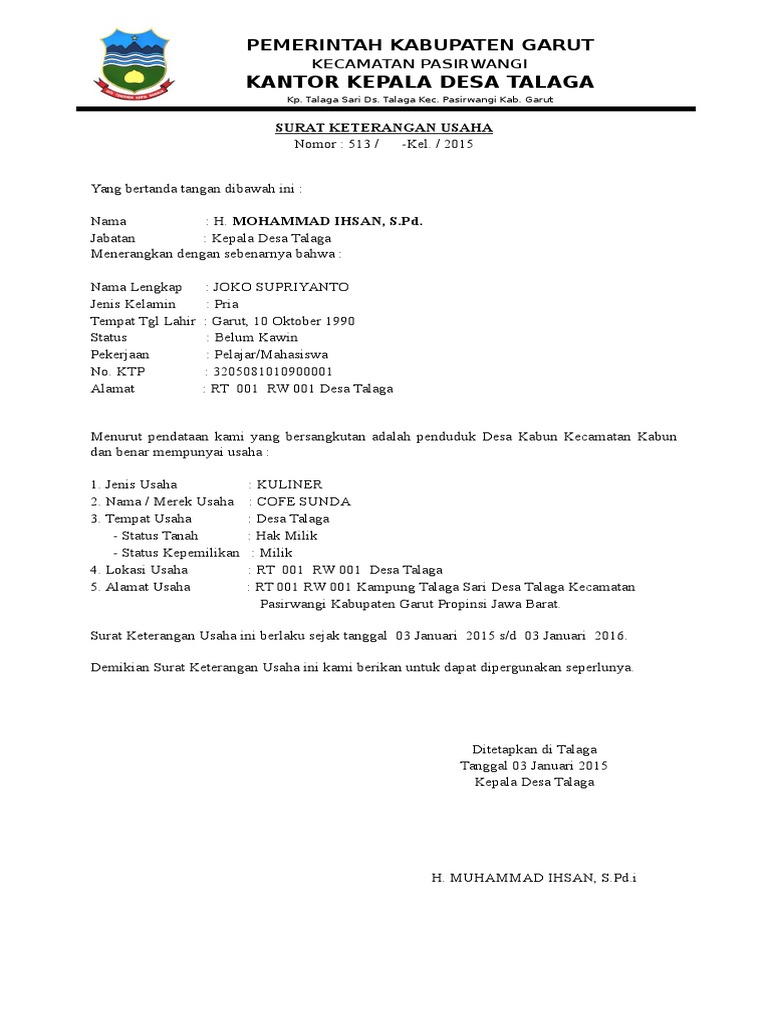 Contoh Surat Keterangan Usaha Dari Kecamatan Suratmenyuratnet