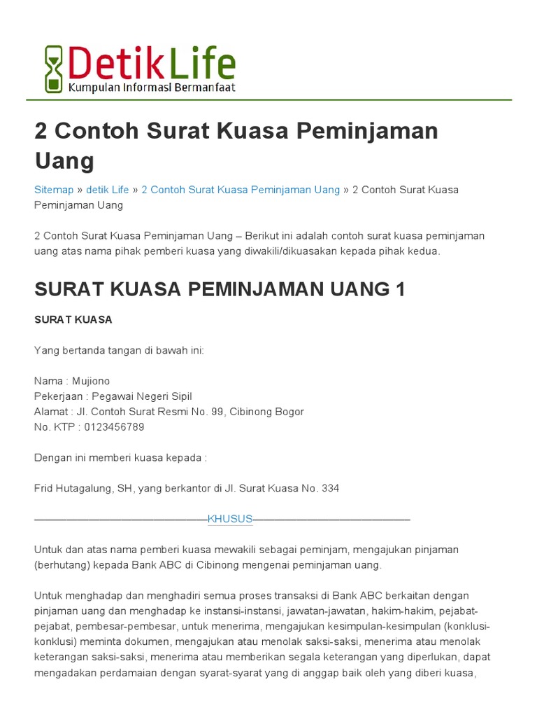 2 Contoh Surat Kuasa Peminjaman Uang Contoh Surat Kuasa