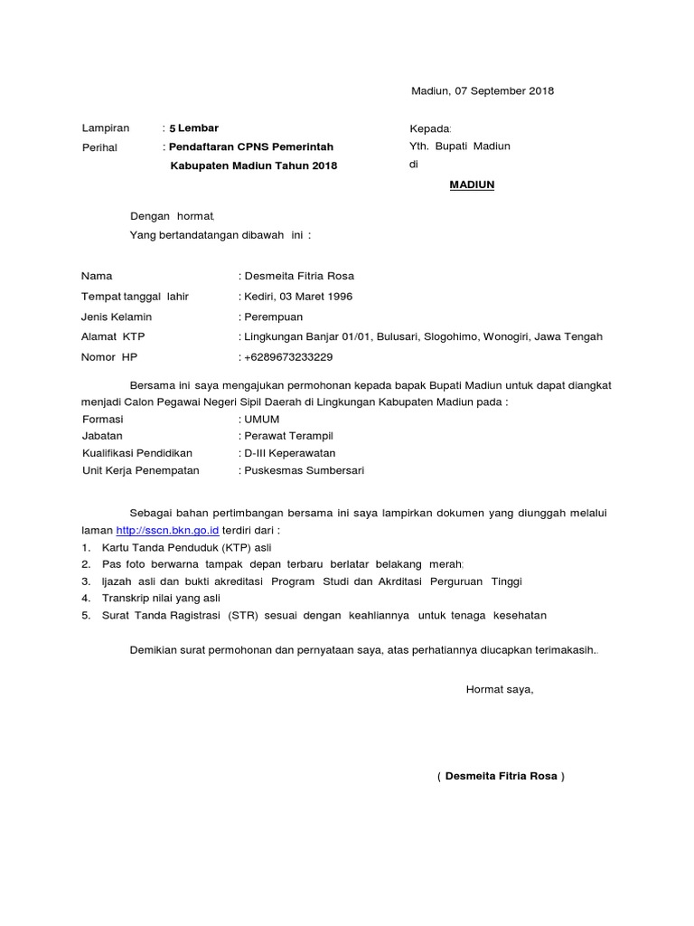 Contoh Bentuk Surat Lamaran Pendaftaran Cpns 2018 Download Disini
